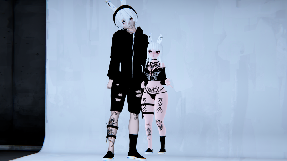 Toggles: Hoodie, Harness, Bra, Pants, Long Sleeve, Shorts, Bunny Ears, Knife Garter, Corset Piercings, Panties, Socks/Shoes.